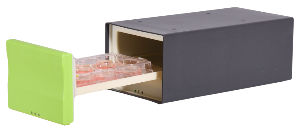 The InCo2-Box offers space for two multiwell plates, two T25 flasks or one T75 flask.